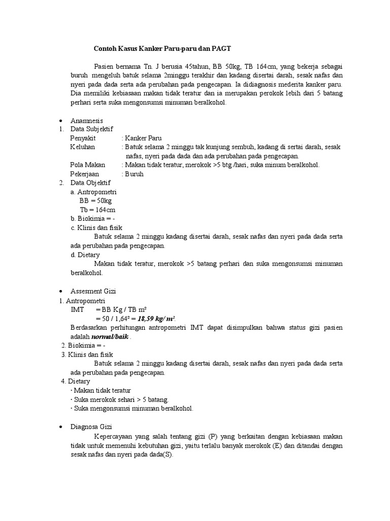 Apakah pemeriksaan utama pada kasus di atas. Kali ini saya mencoba membantu sejumlah teman yang ingin mengikuti Ujian Pengadaan BarangJasa Tingkat Dasar. Perubahan tampilan gen kasus ini menyebabkan sel sasaran dalam hal ini sel paru berubah menjadi sel kanker dengan sifat pertumbuhan yang autonom.
